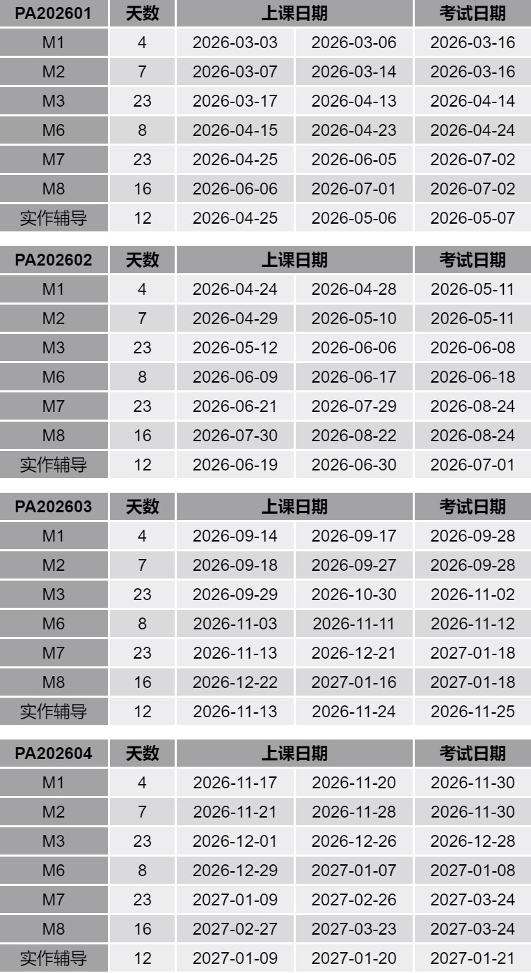 2026年PA全程班/补差班培训日程安排