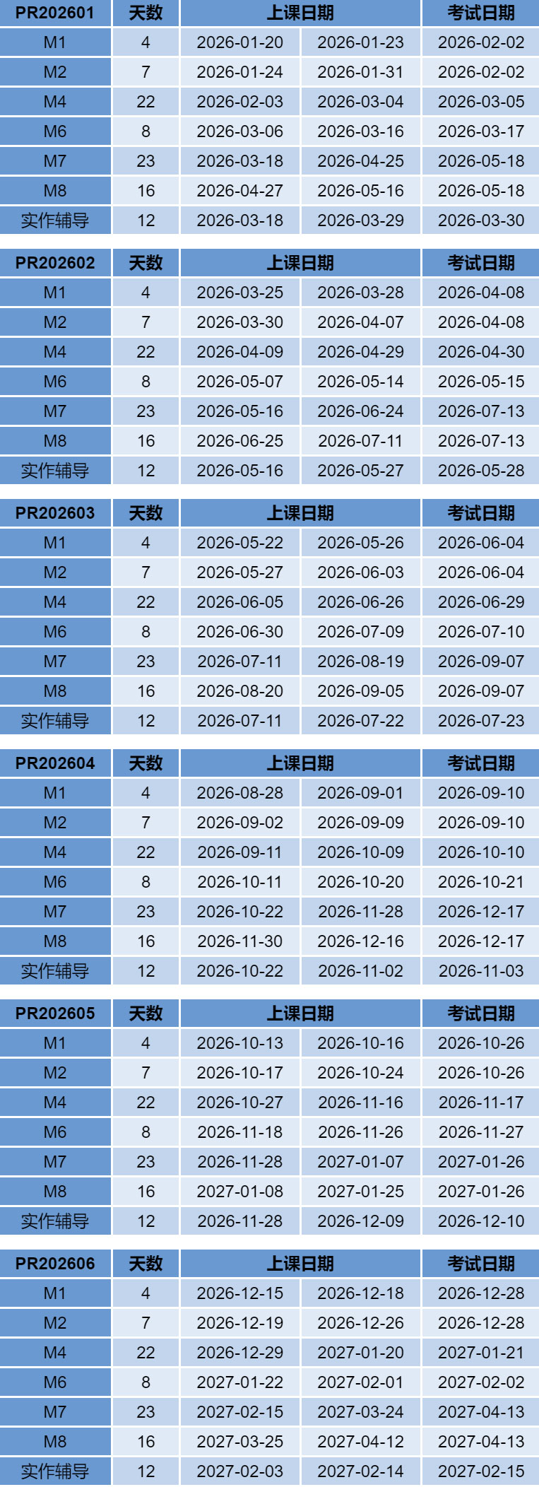 2026年PR全程班/补差班培训日程安排